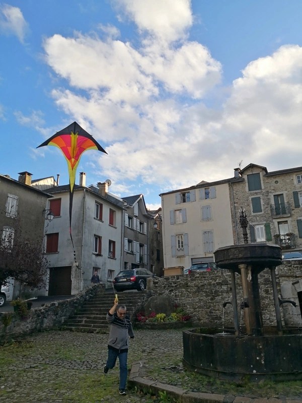 Voler au centre de Lacaune, entre deux averses ce dimanche 20 octobre 2019, a relevé de la prouesse aérologique et cerfvolistique, avec quelques incidents de parcours, la queue des cerfs-volants étant aussi très longue sur ce sujet là.