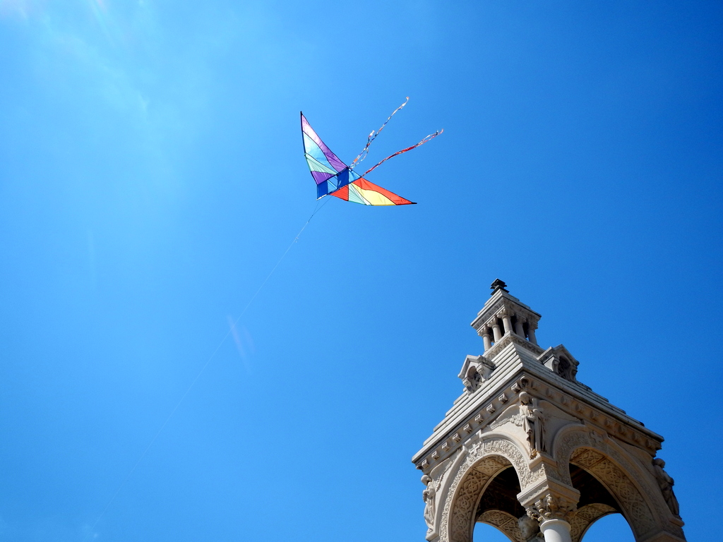 L’enfant, en expert, a traversé la terrasse en diagonale pour donner du fil et tenter un envol rapide afin de rejoindre le flux plus laminaire en altitude. L’étonnement des badauds fut à la hauteur de leur perplexité moqueuse, au début de la scène.