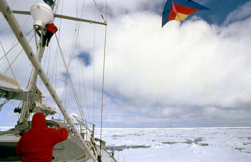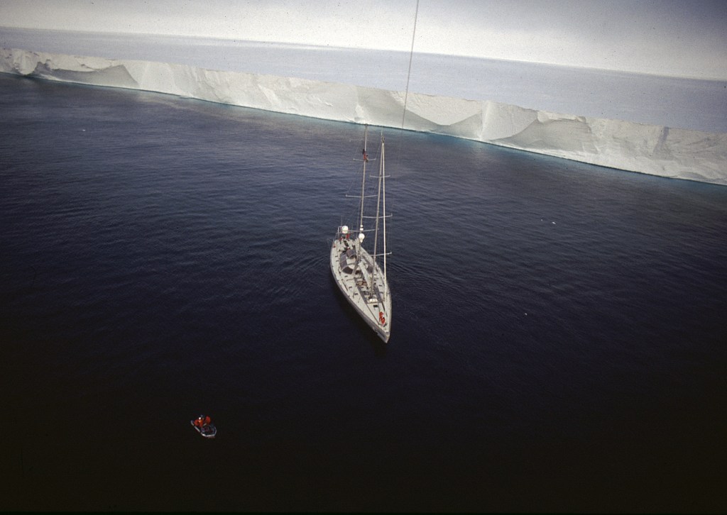Photo principale : Voilier ANTARCTICA dans la Mer de Ross, pris dans la banquise dérivante par 74° latitude Sud – 174 longitude Ouest – Décembre 1993