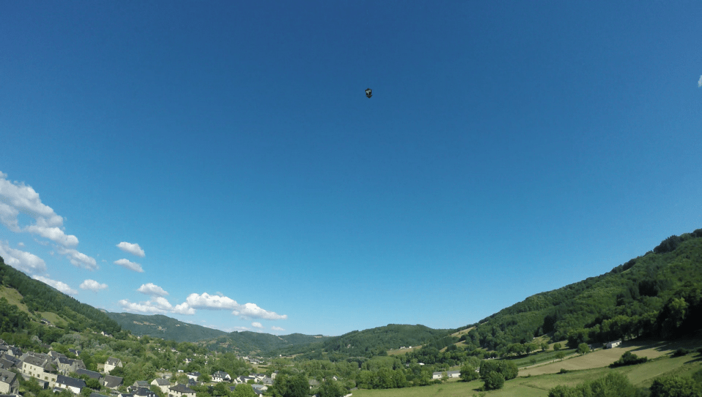 Altitude: 30 à 80m, vol instable et très délicat, une fois la nacelle accrochée