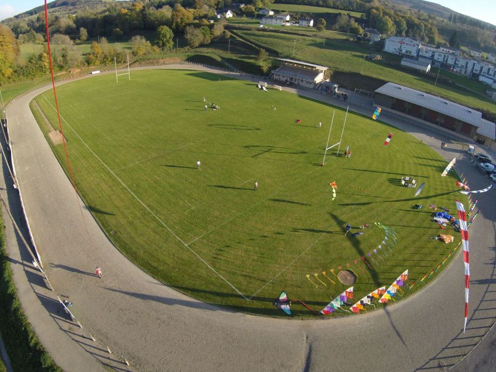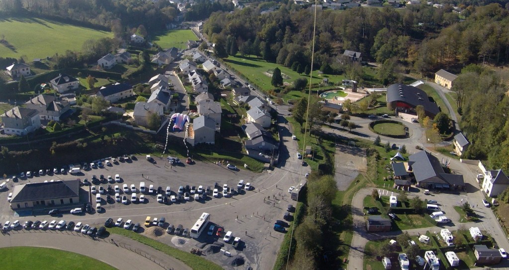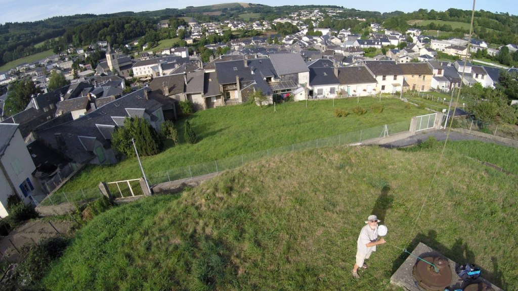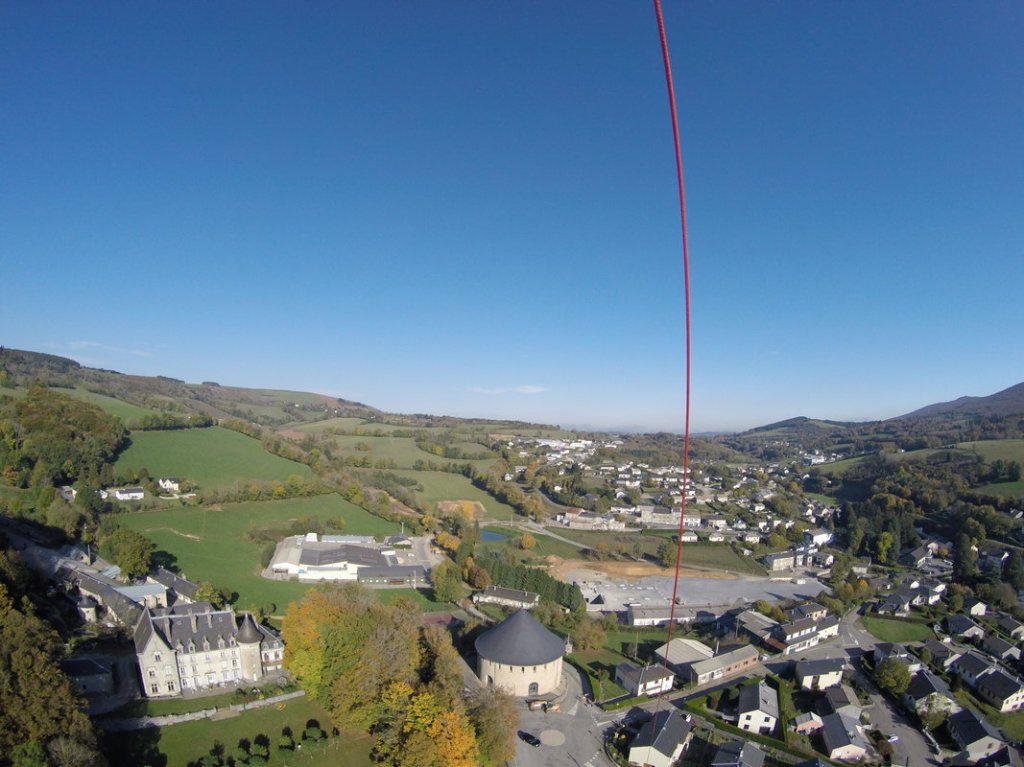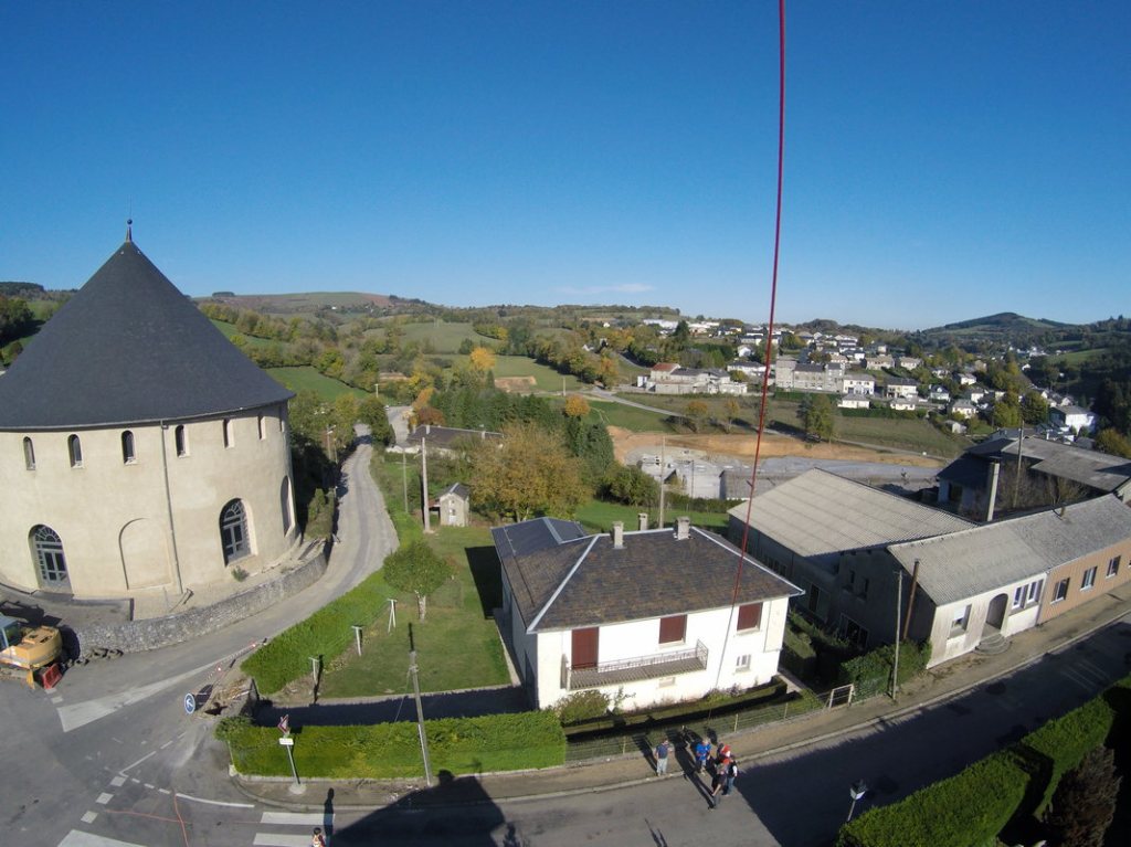 Pour cette photo du château des Calmels, il fallait toute une équipe de Kapistes (photographes aériens par cerf-volant), pour relever ce challenge : décoller depuis un rond point, réguler la circulation, trouver un vent portant et régulier à plus de 100m d’altitude, balader la nacelle photo au milieu des rues pour trouver la bonne position et le bon angle pour les prises de vues… Bref, une vraie action collective et joyeuse dans l’impatience de découvrir, le soir sur grand écran, toutes les photos prises en aveugle.