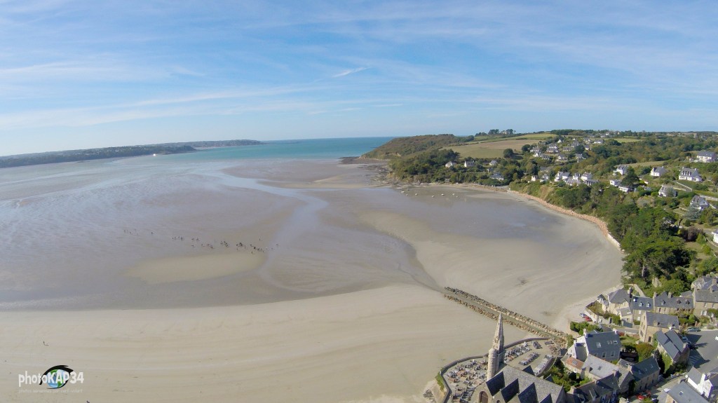 Sac à dos, enrouleur à frein à disque et deux cerfs-volants de 2 et 4m2 et me voilà parti pour une reconnaissance des lieux; Objectif : trouver le meilleur point d’envol pour shooter mon sujet de prédilection, l’église St Michel à St Michel en Grèves, le jour de la St Michel et par un cerf-voliste nommé Michel… CQFD.