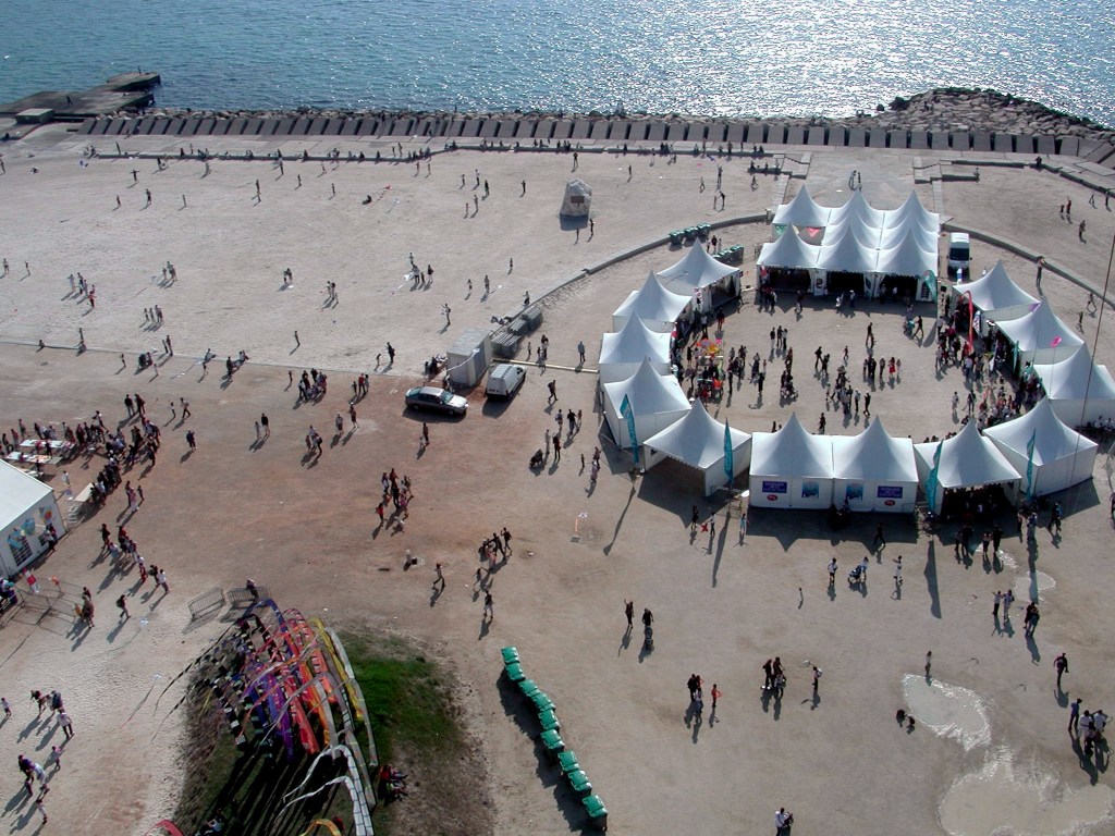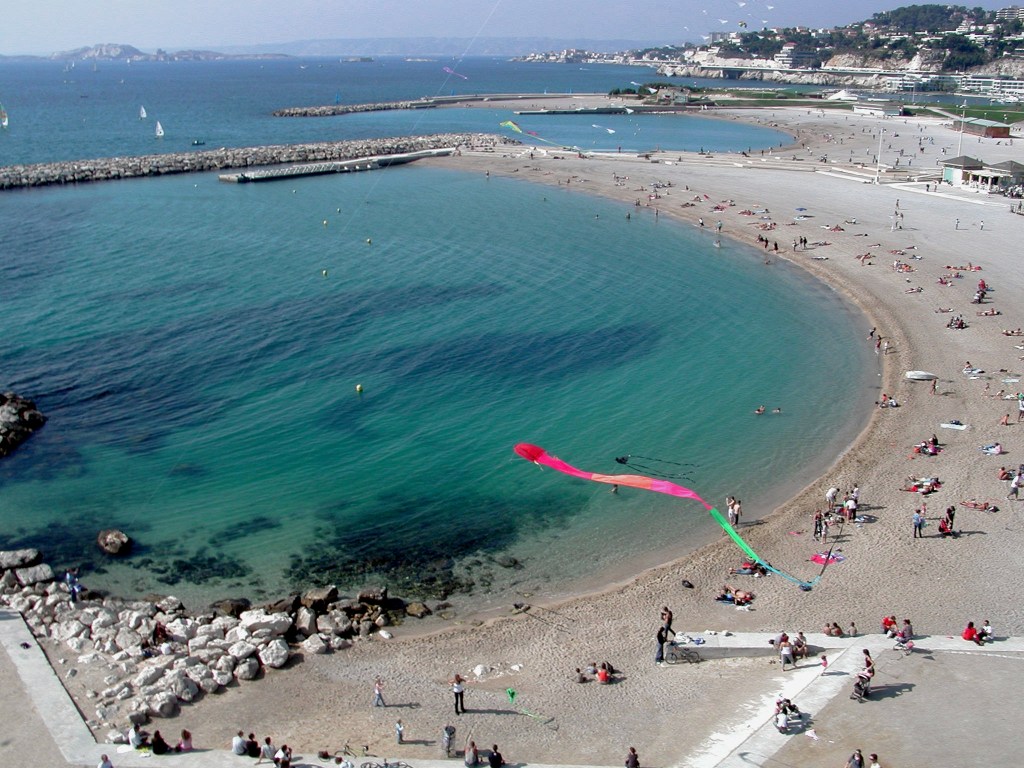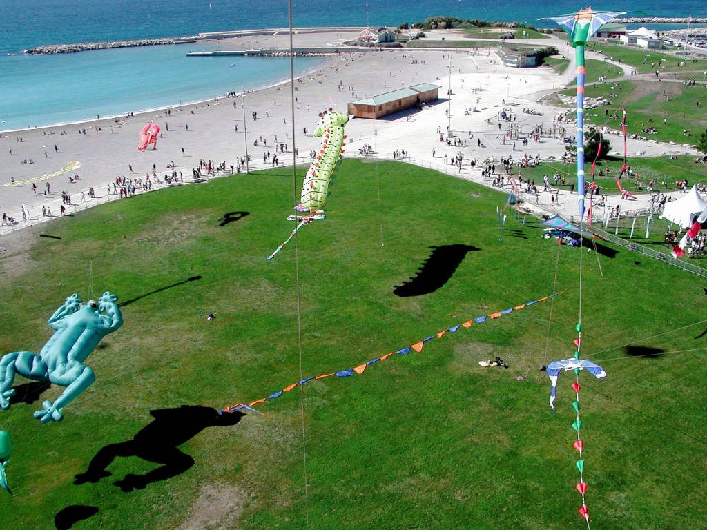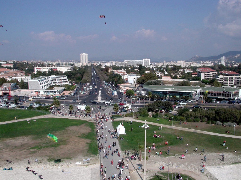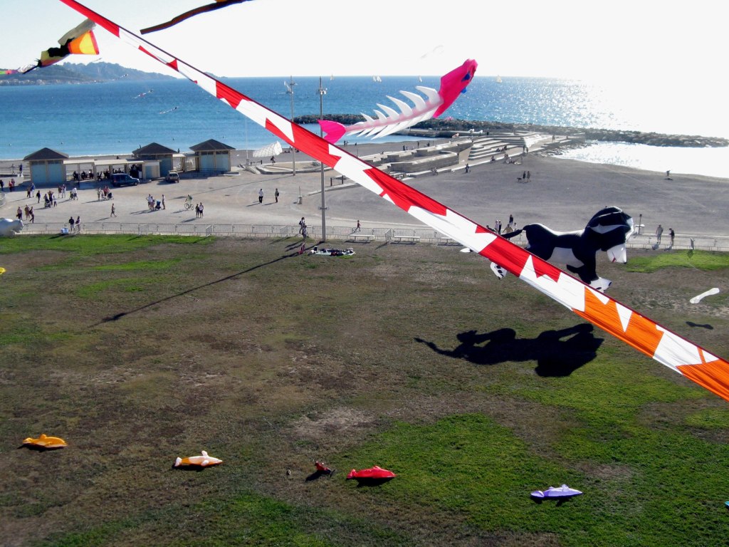 Cette photo prise dans la maturité du festival du vent, révèle tout le potentiel du site de la plage du Prado. La fête du vent de Marseille aura été survolée par les délégations du monde entier et plusieurs milliers de cerfs-volistes du japon, de Chine, du Québec et du Canada, des USA et de toute l’Europe. Les aéolistes (scénographes et musiciens des jardins du vent) auront aussi trouvé en ce lieu, un territoire d’expression et l’accueil bienveillant à leur mode créatif.