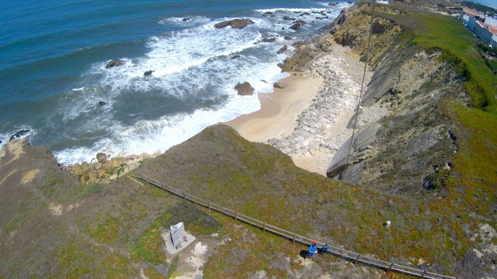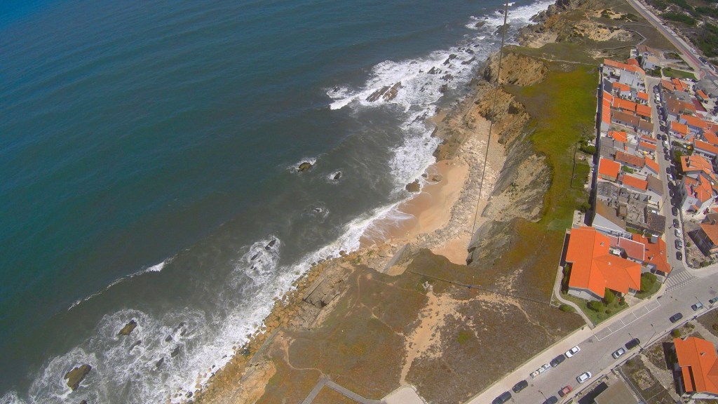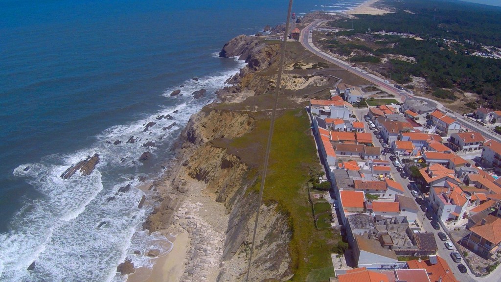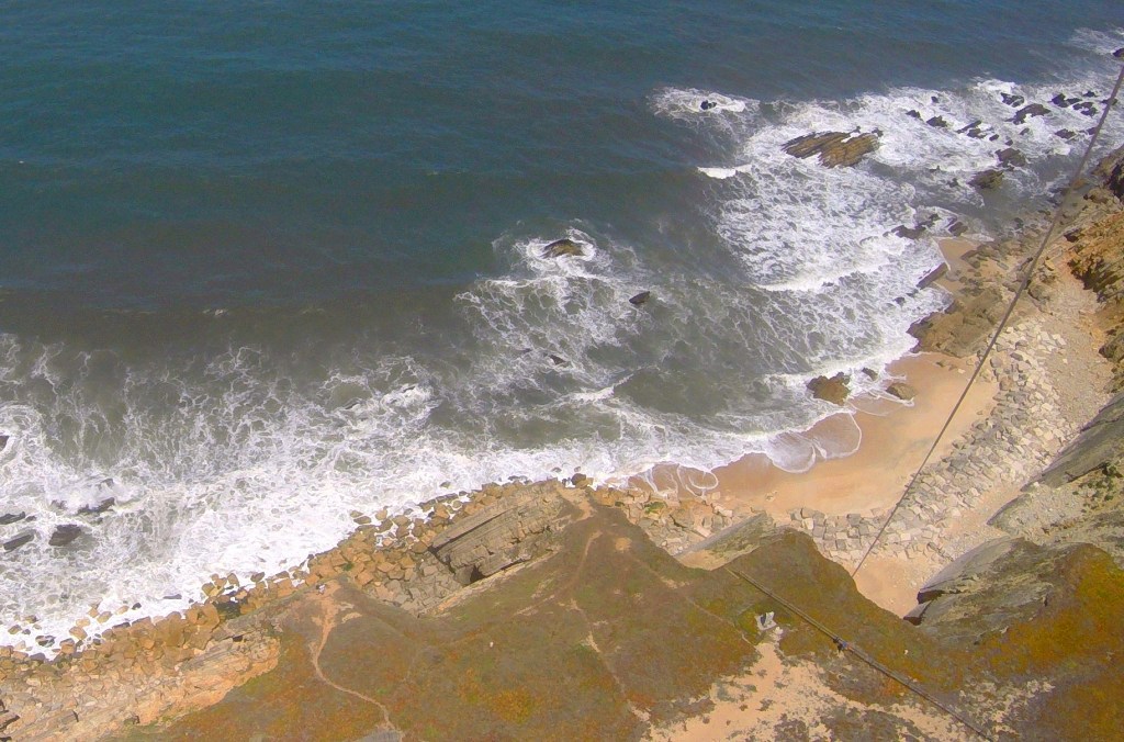 Vent de cinéma, comme toujours, par brise de mer, en 15 minutes j’avais fait un aller retour de 200m de ligne entre terre et ciel. Alors que je descendais mon cerf-volant, une voiture avec gyrophare était sortie du parking, à moins de 30m de mon point d’ancrage. Les 2 policiers étaient passés à côté de moi sans me regarder. Cinq minutes plus tard deux autres agents en tenue, arme à la ceinture, sortaient du poste et venaient dans ma direction. Je n’en menais pas large en récupérant ma nacelle photo : « Olá, cavalheiro »… Ils avaient répondu à mon salut par un signe de tête en passant leur chemin, indifférents à l’olibrius qui jouait au cerf-volant au dessus de leur commissariat.