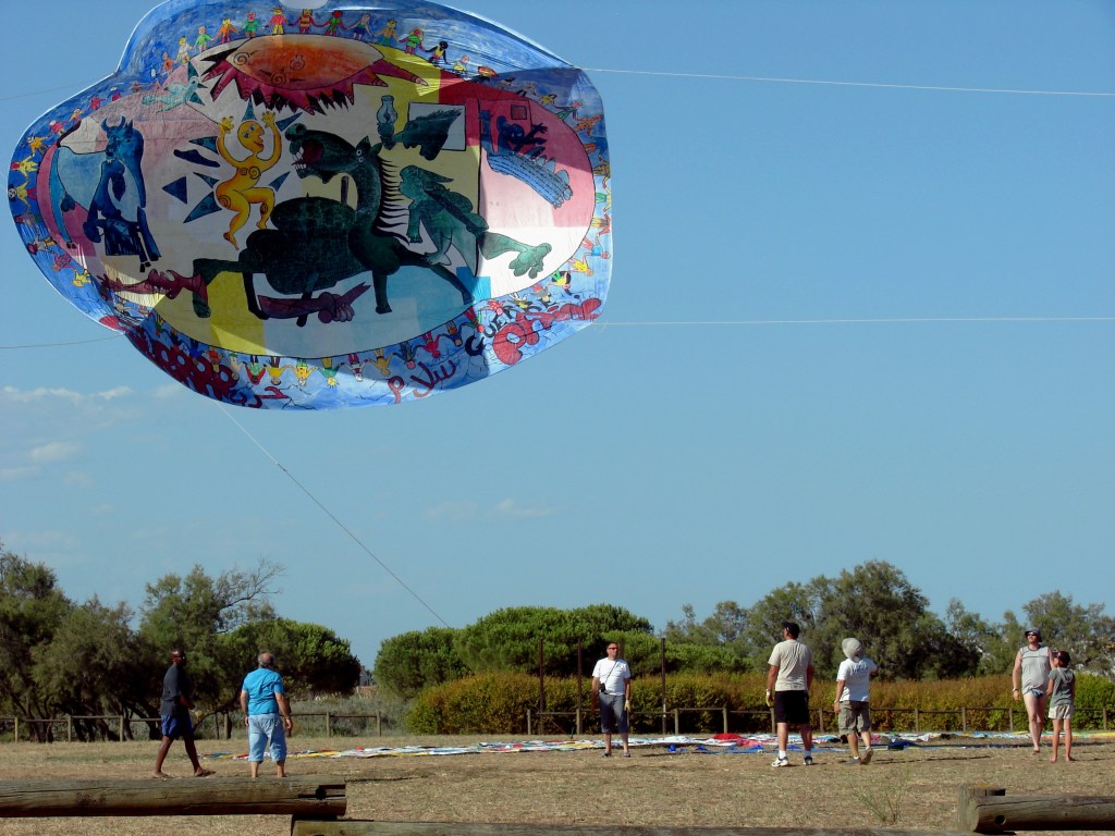 La première galerie de photos aériennes témoigne de cette organisation architecturale si particulière. La seconde galerie évoque les réalisations collectives cerfs-volistes réalisées en 12 ans par plusieurs milliers de vacanciers dans les ateliers du vent d’OK Mistral.