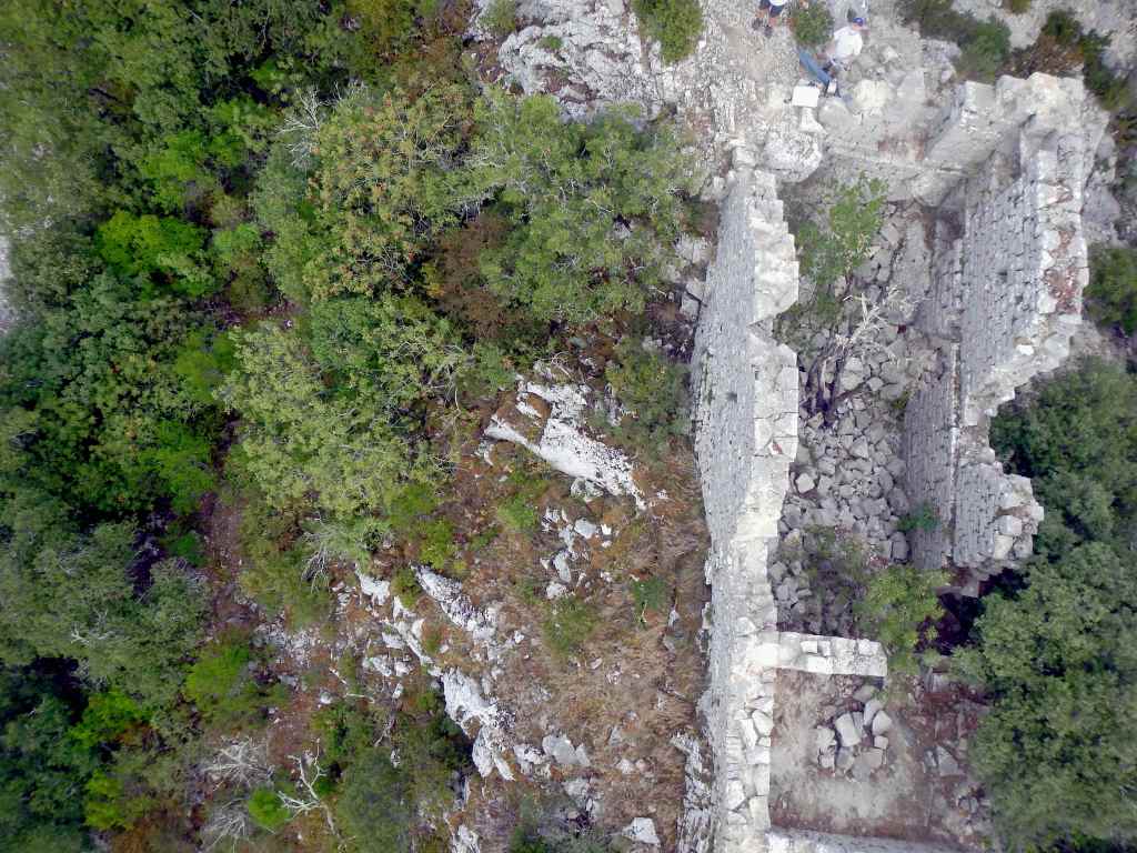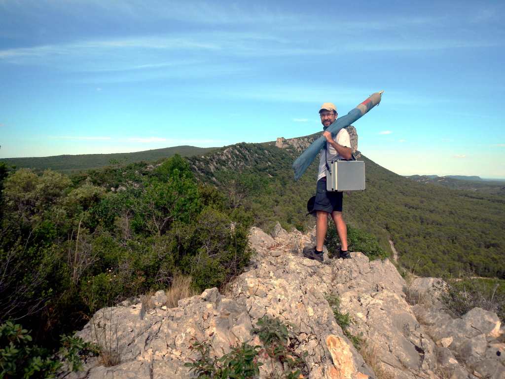 Pour plateforme d’envol, nous n’avions trouvé qu’un amas de pierres entouré de précipices. Vu notre expérience nous imaginions une séance de KAP sans difficultés insurmontables. Nous avons vite déchanté et rangé, dans le sac, nos prétentions et nos certitudes par dessus. Un mauvais vent de Nord soufflait sur la crête de l’Hortus, transformant notre plateforme en machine à brasser l’air.