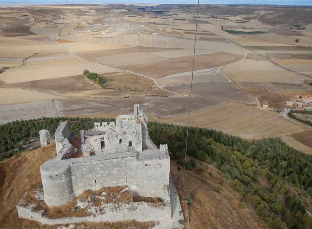 Pour réaliser cette photo il fallait le mériter, car l’ascension du piton rocheux ne fut pas une partie de plaisir, surtout par 40° en plein cagnard. Curieusement, les ruines du château de Castrojeritz sont accessibles et ouvertes aux visiteurs : dédale d’escaliers, coursives, corniches et plateformes parfois sans garde-fous…