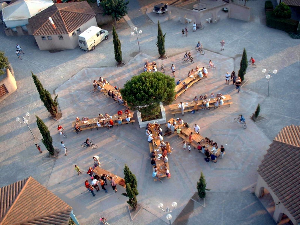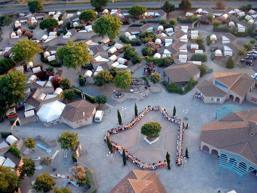 Lorsque nous avons fait cette série de photos, pendant les différents banquets organisés lors de chacune des arrivées des familles d’estivants sur le village de vacances, nous n’aurions pas parié un cent d’€uros que 17 ans plus tard, le fait de festoyer ensemble serait devenu un « patrimoine immatériel » inaccessible : celui de la convivialité.