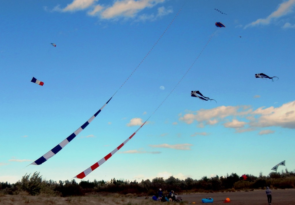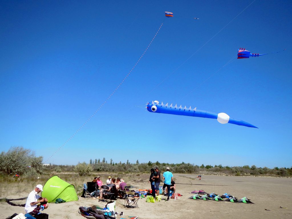 Quand on est cerf-voliste, on ne peut uniquement aller sur cette plage pour faire de la photo aérienne. Il est vrai que l’immensité des espaces (plage de 2.5km sur 700m de profondeur) est une invitation à toutes les pratiques : kite, char à cerf-volant, monofils, vols d’essais des petits derniers ou des géants, pilotage 2 ou 4 lignes et j’en passe et des plus improbables pratiques.