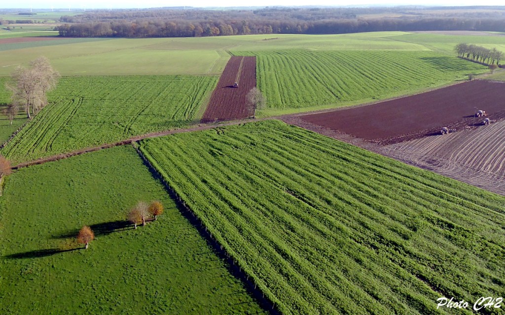 Le Souich est donc devenu le fief nordiste des Pancho Villa et Donquichotte en guerre contre les moulins à vent. Le Kapiste du Souich, qui est un des rares cerf-voliste de l’hexagone disposant d’une piste de décollage derrière sa maison, a donc accroché, 5 années après ses premières photos aériennes, sa nacelle radiocommandée. Entre les deux séries de prises de vues, 24 éoliennes se sont ajoutées aux 6 prévues initialement. Le parc éolien d’Ivergny / Le Souich est donc désormais une réalité qui marquera, pour de longues années, l’horizon de cette grande plaine vivrière. Christian Deux n’est que le témoin volant de cette réalité contemporaine, il n’est ni le porte drapeau d’une fronde anti éoliennes, ni l’homme de la Mancha guerroyant contre les moulins à vent.