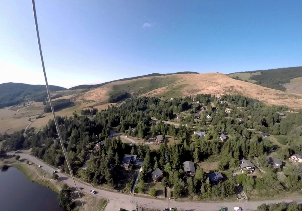 Enfin un vol confortable en zone de montagne, avec une bonne direction du vent, juste dans l’axe de la vallée de la brise laminaire et amicale. En pleine saison estivale, suspendre un appareil photo sous un cerf-volant a de quoi intriguer, ici à Camprieu, presque le bout du monde, j’en ferai une fois de plus la démonstration. J’aurai finalement passé plus de temps à expliquer, informer, démontrer… le bien fondé de la photo aérienne par cerf-volant, qu’à shooter le paysage. De toutes façons l’avais mis la nacelle en mode auto KAP.