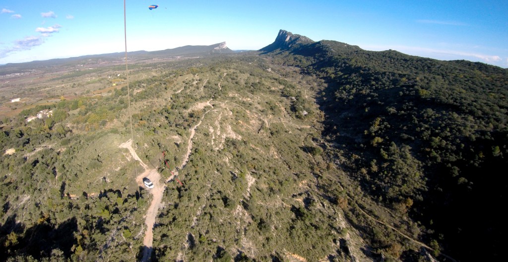 Que son image soit capturée depuis la mer, ou depuis son sommet (au prix d’une marche vertigineuse par le chemin des crêtes), ou depuis un planeur de l’école de vol à voile installée à son pied, ou encore depuis les parapentes évoluant au-dessus de la Séranne ou de la Pourcaresse et logiquement avec mon cerf-volant, depuis de nombreuses années… Ce lieu est vraiment fascinant.