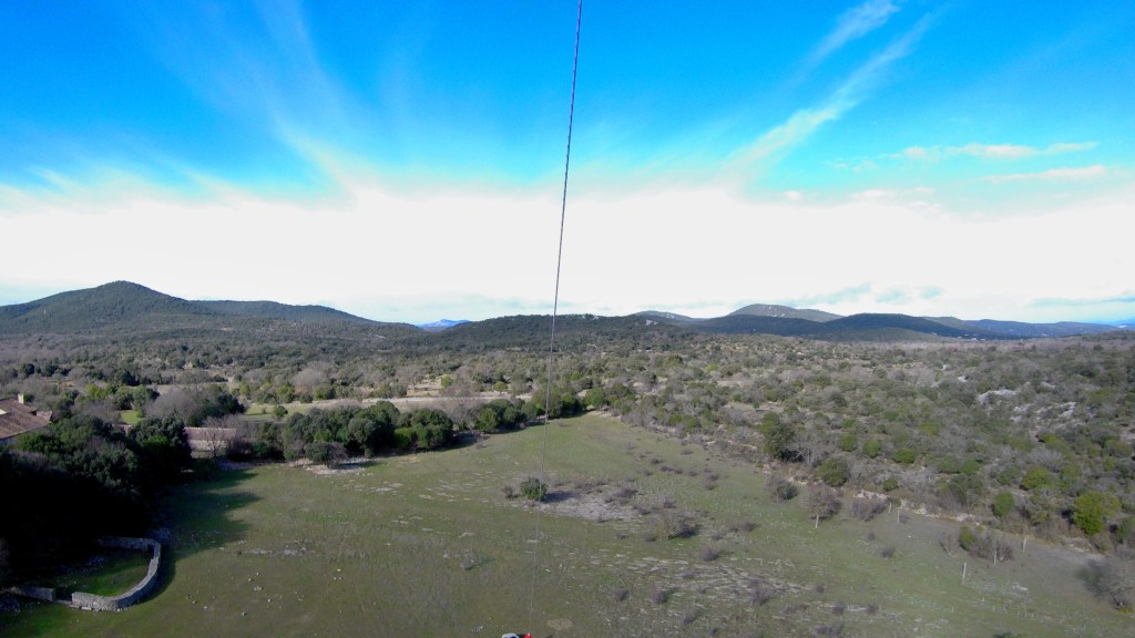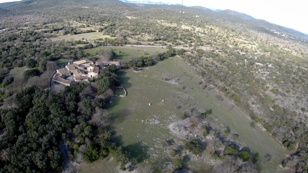 C’est la première fois que je survole cet endroit. Même si la grande prairie de plus de trois hectares d’herbes rases est une invitation, j’ai pris en compte qu’ici le Berger du Pic sort quotidiennement ses 400 moutons et brebis et qu’il convient de prendre ce facteur-là en compte, avant de mettre un cerf-volant en l’air.