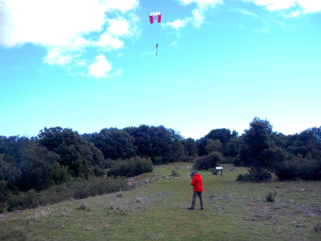Pendant le pique nique, nous avons tout simplement laissé tourner la caméra sur sa nacelle automatique. L’avantage de la Tramontane est que ses variations soudaines modifient l’altitude des prises de vues, sans que nous ayons à intervenir. On découvrira le résultat en vidant les cartes mémoire à notre retour… et nous ne serons pas déçus.