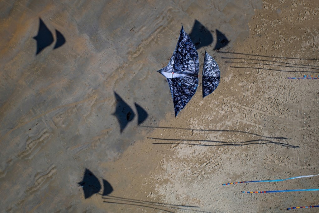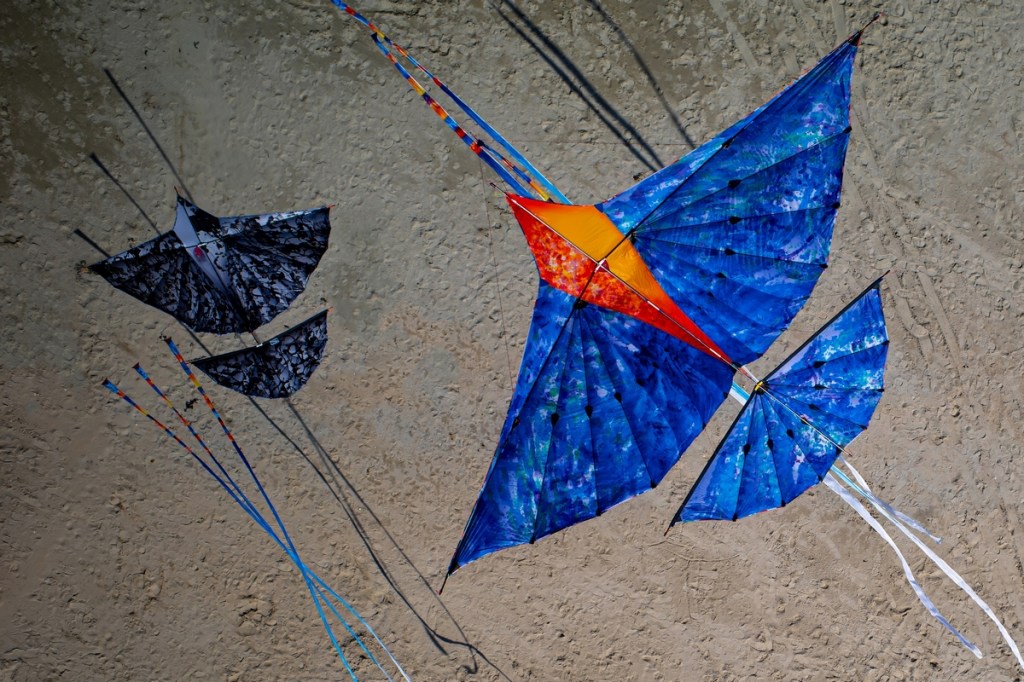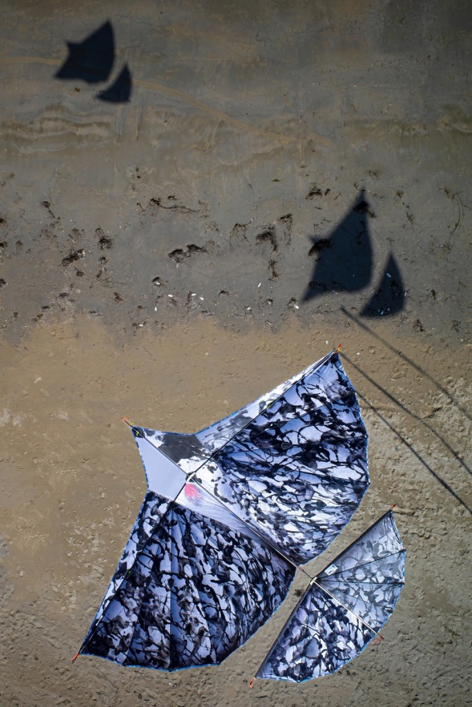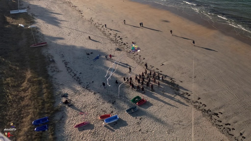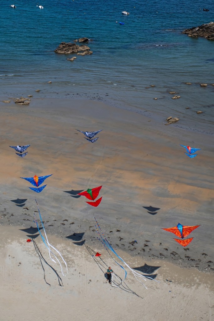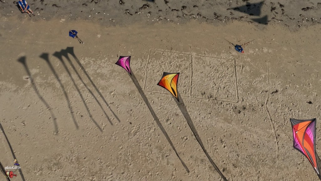 Deux séances de KAP à deux périodes de la journée, le matin avec un soleil culminant et le soir au couchant. Une lumière et des jeux d’ombres à exalter un chasseur d’images. Pour nous, l’endroit fut un écrin pour transcender les œuvres volantes de l’artiste Michel Gressier et valoriser notre approche de photographes du ciel et du vent. Un lieu rêvé pour méditer, buller, bronzer et nager ou écouter les percussions du groupe ilien BatuKayu.