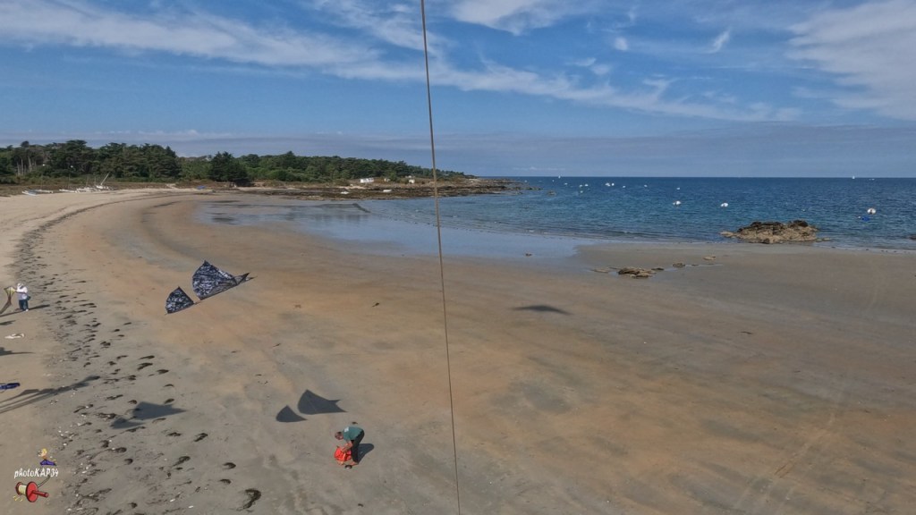 Notre première séance, en fin de matinée, fut à la fois une découverte enthousiaste de l’une des plus belles plages de l’île (elles sont portant nombreuses, plus belles les unes que les autres), et, un total bonheur de voler avec un vent de cinéma (15 km/h en brises régulières) en kapant au dessus des œuvres planantes de l’un des artistes volants les plus prolifiques de l’hexagone : Michel Gressier.