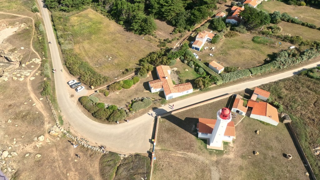 Le petit phare, d’une blancheur immaculée, surmonté d’une lanterne rouge, accroche tant la lumière, qu’il semble être autant un vigile du jour comme de la nuit . Perdu au milieu de son isthme de la pointe des corbeaux et survolé par les œuvres volantes de Michel Gressier, ce lieu nous aura offert un sujet photographique émouvant.