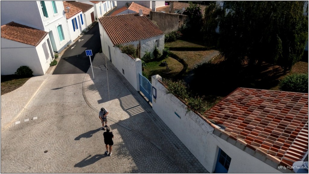 Si les photos et vidéos du port de plaisance, depuis la jetée, ne furent qu’une formalité sous une brise amicale, il n’en fut pas de même pour le survol de l’église Saint Amand de l’île d’Yeu.