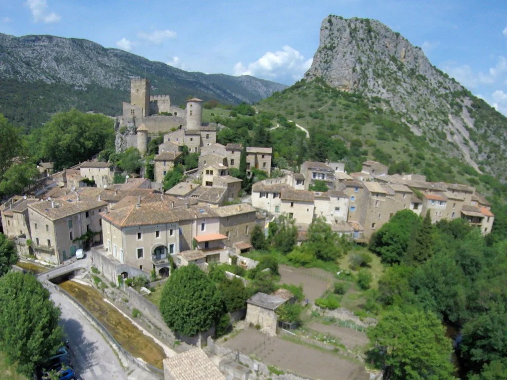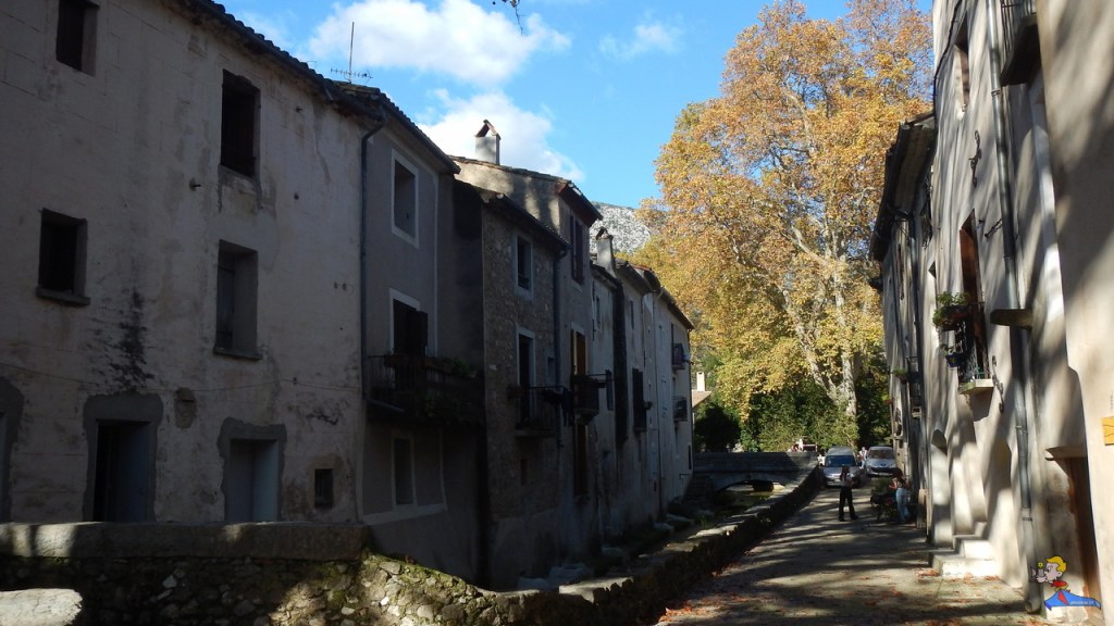 C’est aussi une vallée profonde, presque secrète, traversée par un ruisseau sorti, comme par miracle, du sol et du rocher, la Buèges1. Surplombé par un monolithe « le Roc Tras Castel » aux 46 voies d’escalades, qui aurait pu être le décor de « rencontres du 3e type », avec ses multiples galeries souterraines de spéléologie, avec son passé féodal et son château de Baulx orné de belles tours et son église romane… voilà ce qui fait de Saint-Jean-de-Buèges probablement l’un des plus beaux villages de France (mais ça, il ne faut pas trop le dire).