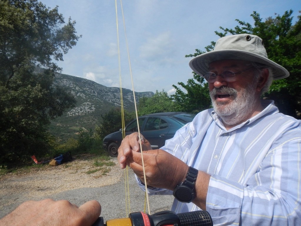 Il nous aura fallu pas moins de sept visites pour accrocher nos cerfs-volants dans le ciel de Saint-Jean-de-Buèges. Comme dans toute la vallée de la Buèges, l’aérologie est ici d’une complexité à faire tourner en bourrique le plus expérimenté des rapaces. Nous ne sommes ni l’un, ni l’autre, même si nous avons une « petite » expérience du vol en cerf-volant. Comment réussir à nous élever au-dessus des points d’intérêts du village quand le vent change constamment de sens selon l’altitude, et peut même se mettre parfois à souffler du haut vers le bas ; imparable ! La montagne de la Séranne toute proche, le rocher d’escalade, les falaises du Causse de la Selle… tous ces obstacles géologiques, situés dans l’axe des vents dominants, rabattent les flux et font de cet endroit une énorme machine à brasser l’air.
