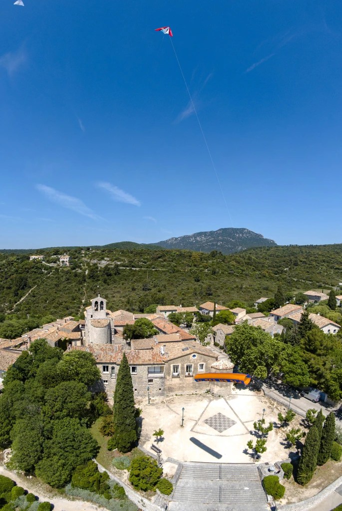 Pour saisir une image aérienne de St Jean de Cuculles avec un cerf-volant, il faut compter avec le ciel et avoir la chance de son côté. Au pays de la Tramontane et du vent du Nord dominant, voler en ce lieu relève de l’hypothétique. Le Pic St Loup, qui domine le village en bon protecteur des vents glacials qui descendent rageusement l’Aigoual en hiver, est aussi source de courants turbulents et de rabattants assassins pour nos cerf-volants.
