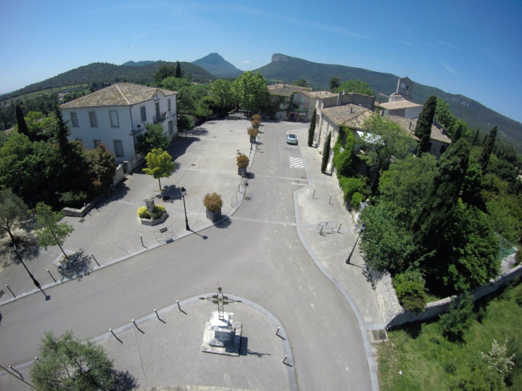 Pour photographier le cœur du village, il nous fallait réunir plusieurs conditions : un vent de Sud, Sud-Est, une lumière matinale et une piste d’envol proche de la mairie et de l’église.