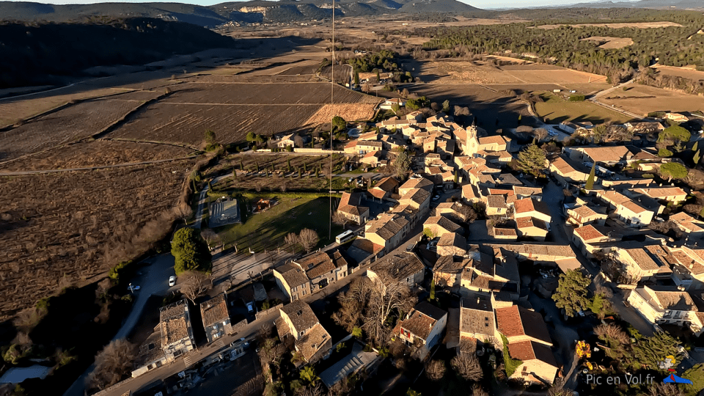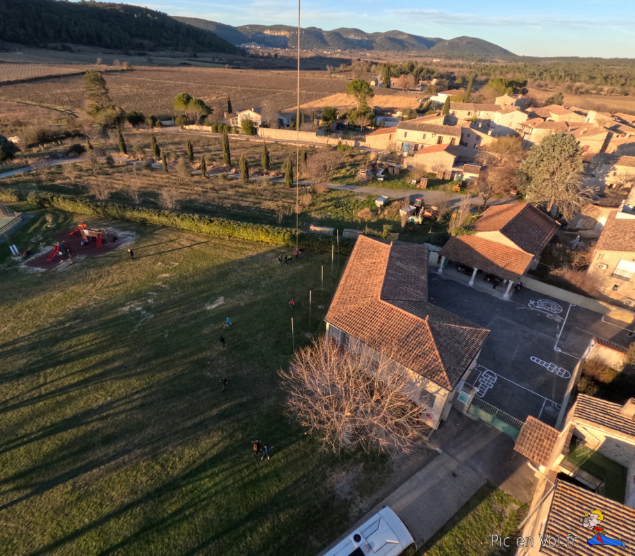 C’est donc en compagnie d’un jeune et enthousiaste public que nous avons pris un peu de hauteur, pour une séance photos qui aura fait, cette fois encore, l’unanimité des enfants, des parents et des villageois. Un envol sans histoire, dans une lumière des heures dorées et aussi des tas de questions qui ont fait de cet instant une leçon de « choses » (comme on disait il y a deux générations au moins). Les enfants de Vacquières ont eux préféré une leçon de SVT, d’écologie et de technologie, une autre époque certes, mais le même enthousiasme émerveillé pour les cerfs-volants et tout ce qui vole.