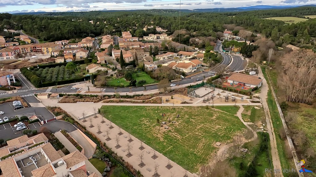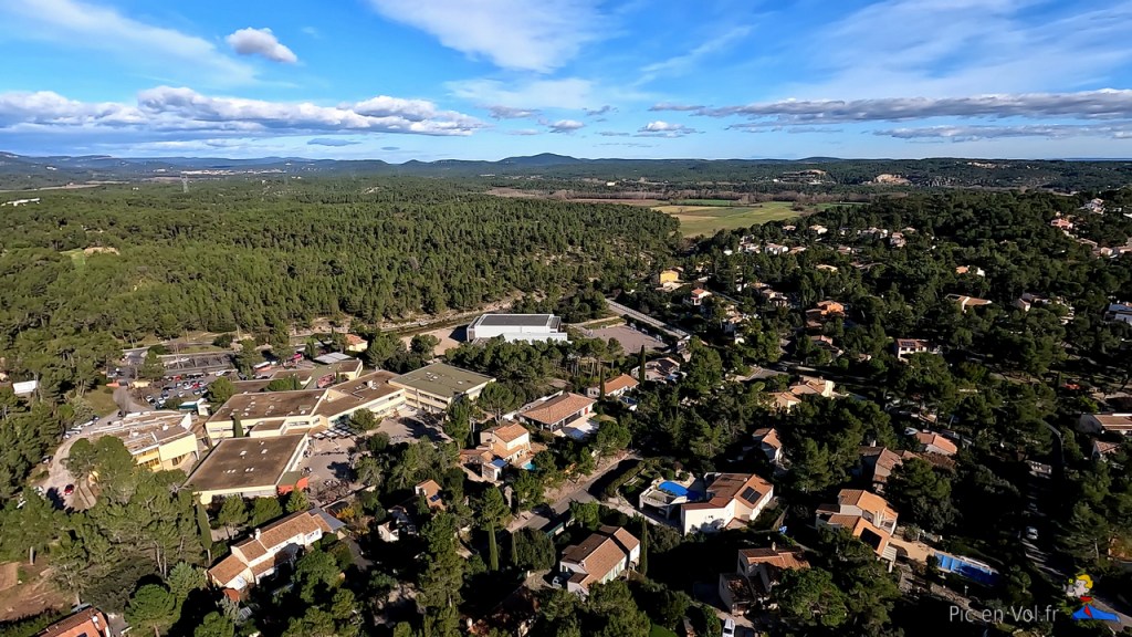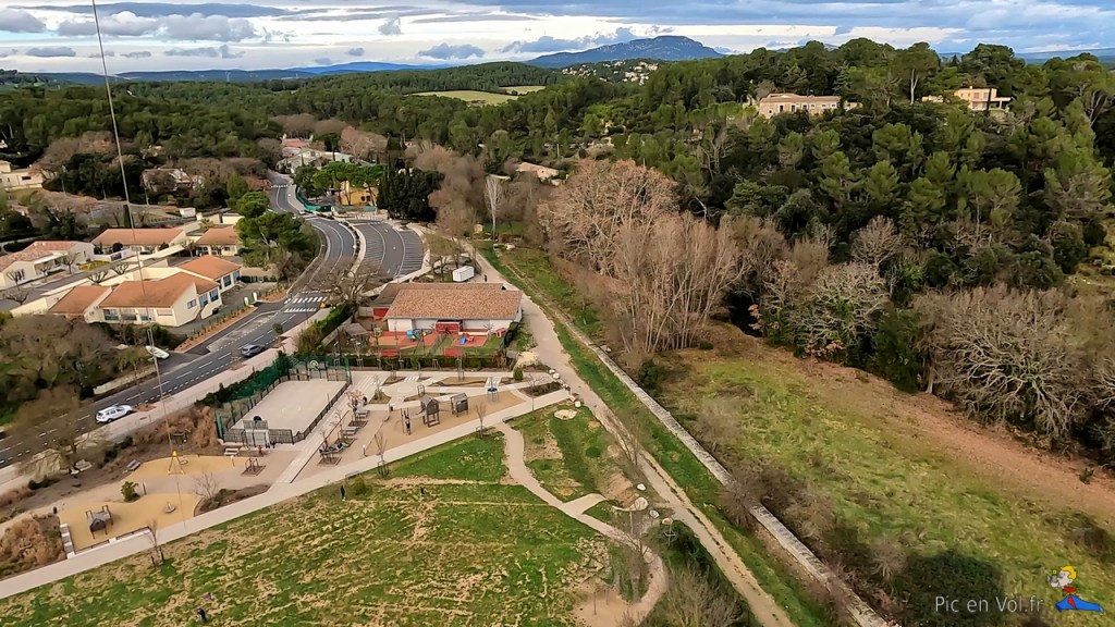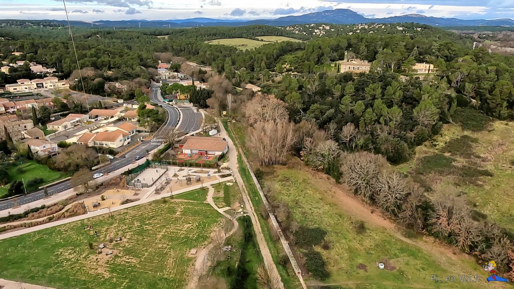 Voisine de notre commune, St-Gély-du-Fesc, nous n’avions jamais pris le temps de vraiment découvrir cette « zone » résidentielle et forestière, c’est tout au moins l’idée reçue que nous nous en faisions. Finalement, nous avons dû prendre du temps pour aller arpenter ce territoire afin de trouver nos pistes d’envols, rares, insolites, techniques et, parfois, bien cachées. Après douze survols et quelques milliers de mètres de lignes déroulées et enroulées, chaque fois avec grand-peine par Tramontane et Mistral, nous avons pu saisir quelques belles découvertes. Tout est contenu dans le titre de notre reportage : « Entre nature et jeunesse ». St-Clément-de-rivière est une « ville-forêt » aux multiples activités de plein air, mais aussi un carrefour des jeunes générations : lycée, collège, école, parcs de jeux, centre de loisir, associations, équipements sportifs, parcours de santé, voies vertes, pistes de VTT, club d’équitation… Quant au cœur du village, superbement aménagé, du côté du parc de l’aqueduc, notre voyage aérien y a trouvé de belles occasions de photos pour faite apprécier cette cité dans la forêt.