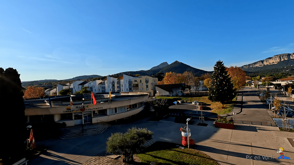 Mais c’est au cœur même de la ville, place de la mairie, que le challenge de notre projet fut le plus évident. En préalable, nous nous sommes présentés à la police municipale qui nous a fort aimablement accueillis et a immédiatement consulté le site WEB de Pic en Vol.