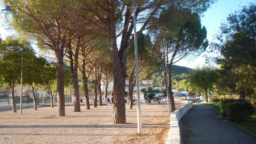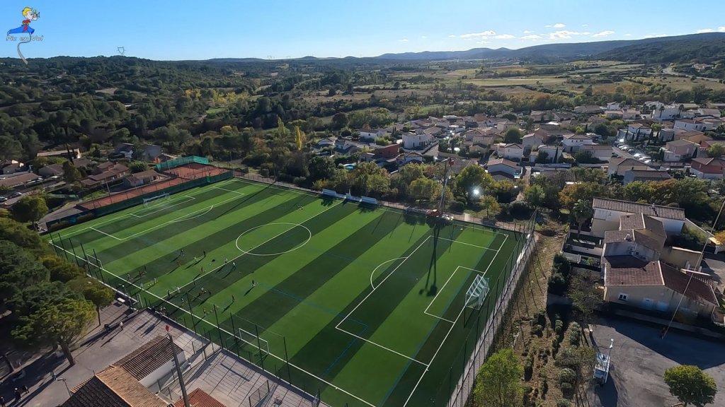 Un premier survol du complexe sportif fraichement modernisé, avec un terrain de foot synthétique flambant neuf, une piste de skate, un boulodrome sous les arbres et un parcours nature, le long de l’un des ruisseaux qui traverse le village.