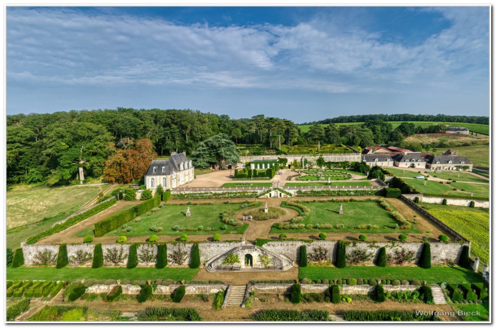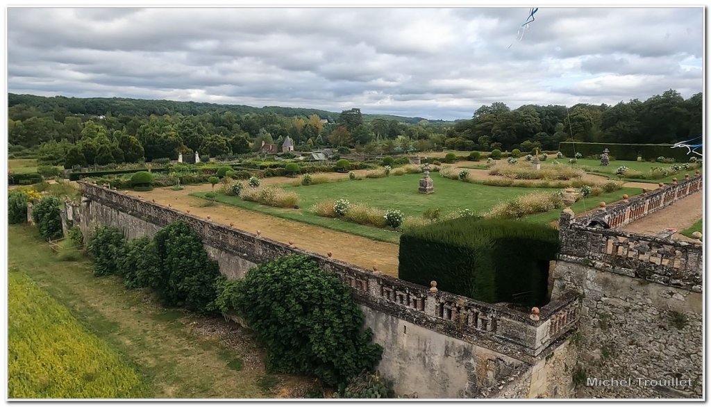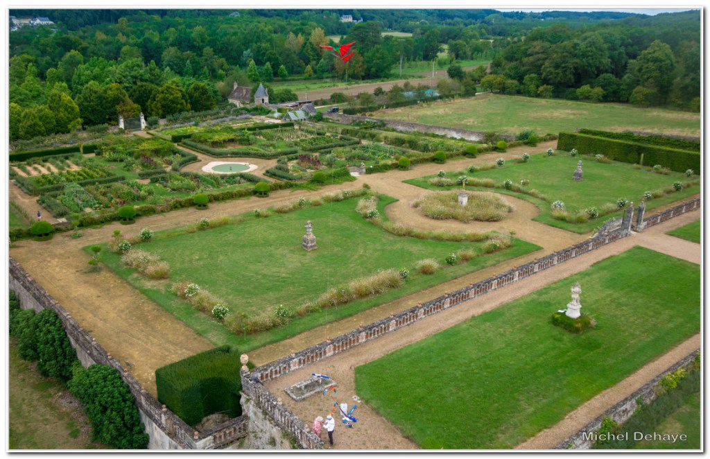 À Valmer, personne ne fut déçu, nous avons découvert depuis le ciel un véritable joyau, une symphonie de verdure et de fleurs et un cousinage incontestable avec Villandry. Ici, nous sommes certes loin de la magnificence des châteaux royaux de la Loire, mais la volonté du roi François Premier et le talent de son jardinier, le « Sieur Binet » ont fait de cet endroit un jardin remarquable que nos cerfs-volants ont réussi à sublimer.