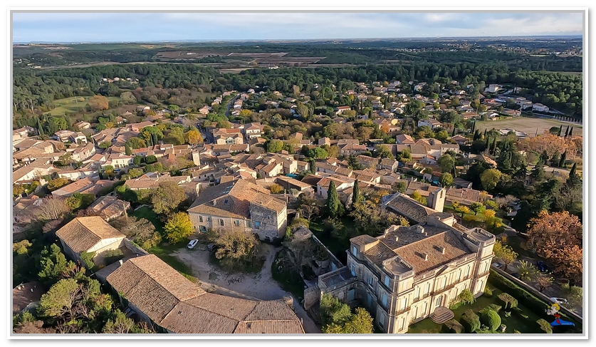 Un château du XVIIIe magnifiquement conservé, le vieux village médiéval, l’environnement naturel du village, la vue panoramique vers le Pic St loup et le vignoble réputé, les vins d’Assas prisés par des amateurs avertis depuis 1745. Bref, un endroit où il fait bon vivre. Arrivés en fin d’après-midi, la Tramontane s’était renforcée et laissait entrevoir une séance de vol photographique particulièrement musclée, avec nos cerfs-volants. Nous avons donc opté pour l’un de nos prototypes « anti-vent » mis au point pour le projet « Pic en Vol »…