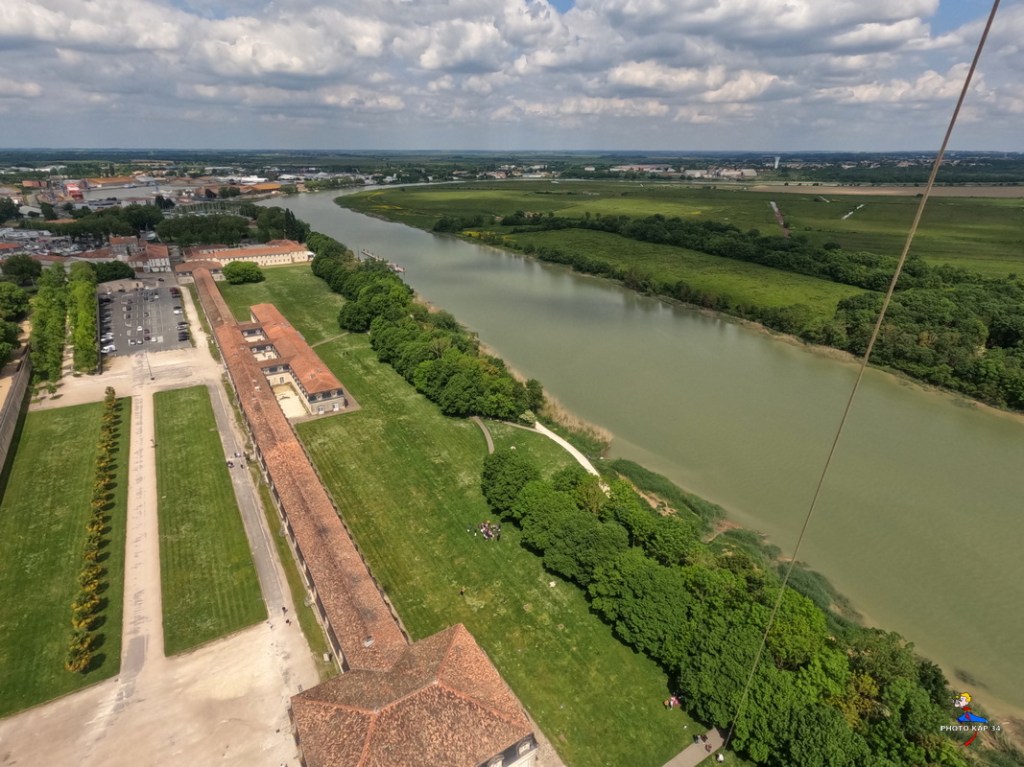 Photo réalisée avec un cerf-volant delta de 5m d’envergure, par un vent thermique de 10 à 13 km/h. Le système photographique est une camera Go Pro Hero 10 en mode photo accéléré linéaire. La nacelle automatique rotative est un modèle artisanal suspendu sur le fil de retenue en kevlar par un pendulaire.