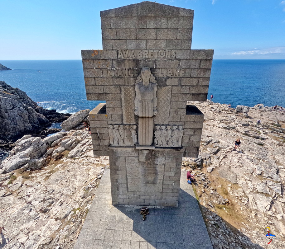 Le Général de Gaulle a inauguré ce mémorial Aux bretons de la France Libre en 1951. Il est sur la falaise de la pointe de Pen Hir, à quelques mètres des Tas de Pois et de l’emplacement du sémaphore détruit pendant la guerre : son immensité granitique est visible à des kilomètres à la ronde.