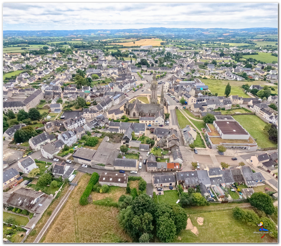 L’église Saint-Germain, édifiée en 1530, se dresse majestueusement dans la commune, représentant l’architecture gothique flamboyant du XVIe siècle. Sa façade ornée de sculptures détaillées attire le regard, tandis que l’intérieur révèle des trésors architecturaux. Par ailleurs, depuis le sommet du Menez-Hom, à 20 km de distance, vous pouvez admirer le clocher de l’église.