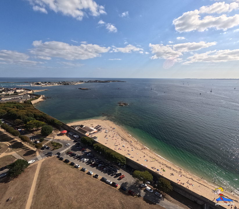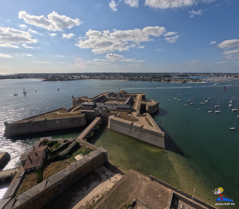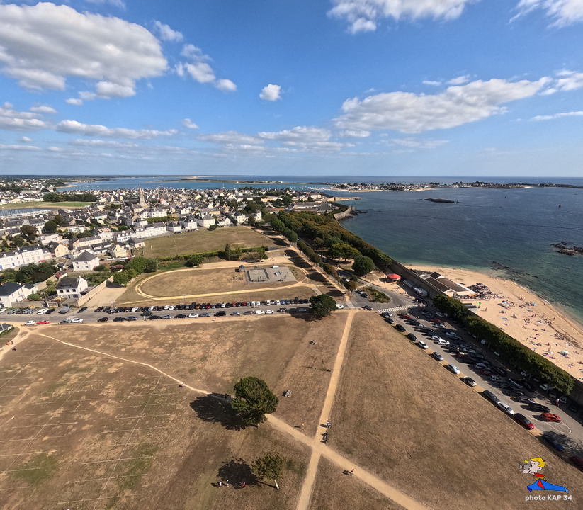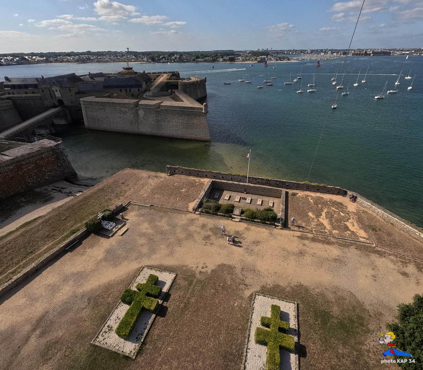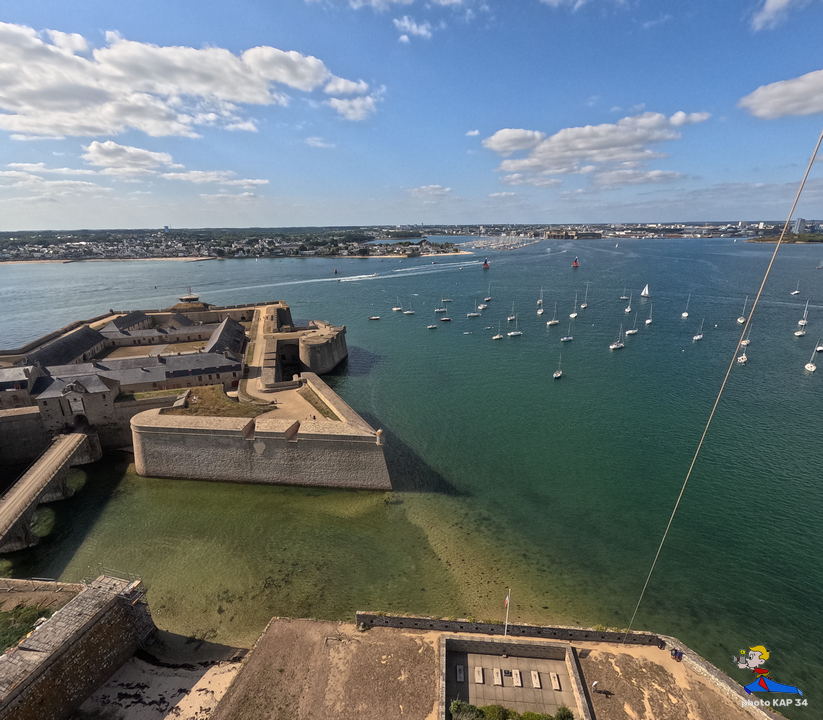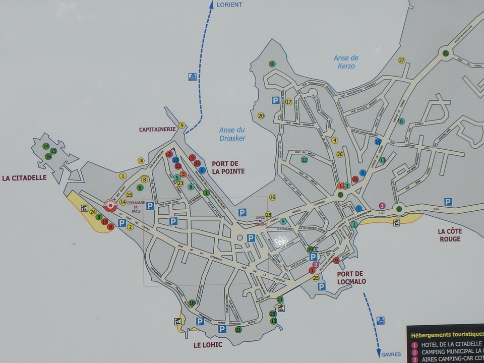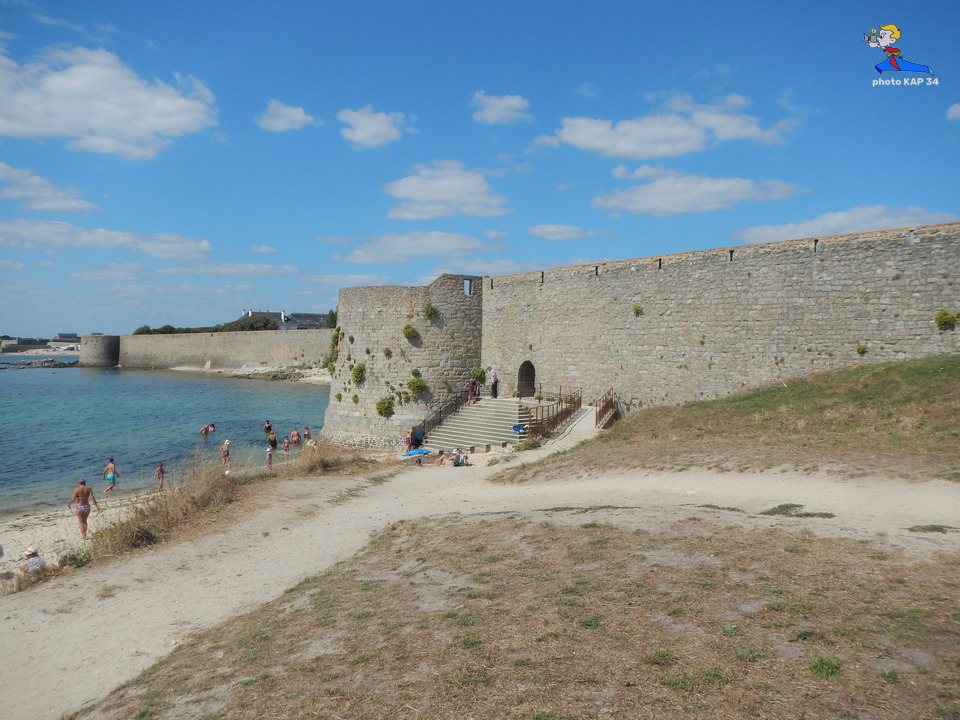 De ses origines, la citadelle garde deux bastions à l’allure ibérique. On y accède en franchissant un petit pont et en traversant la demi-lune, ouvrage défensif en triangle. Sur le chemin de ronde festonné de verdure, de silencieux canons restent tournés vers l’ île de Groix. Aujourd’hui, les regards s’orientent plus pacifiquement vers la pointe de Gâvres. Des pâtis, ancienne place d’arme, une porte trouant les remparts rejoint l’agréable plage des Grands-Sables.