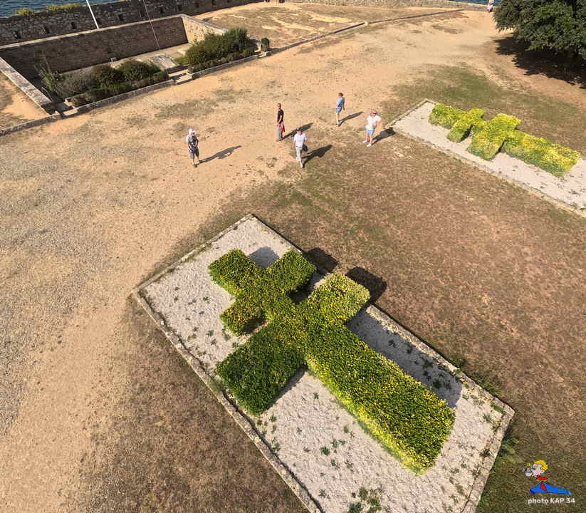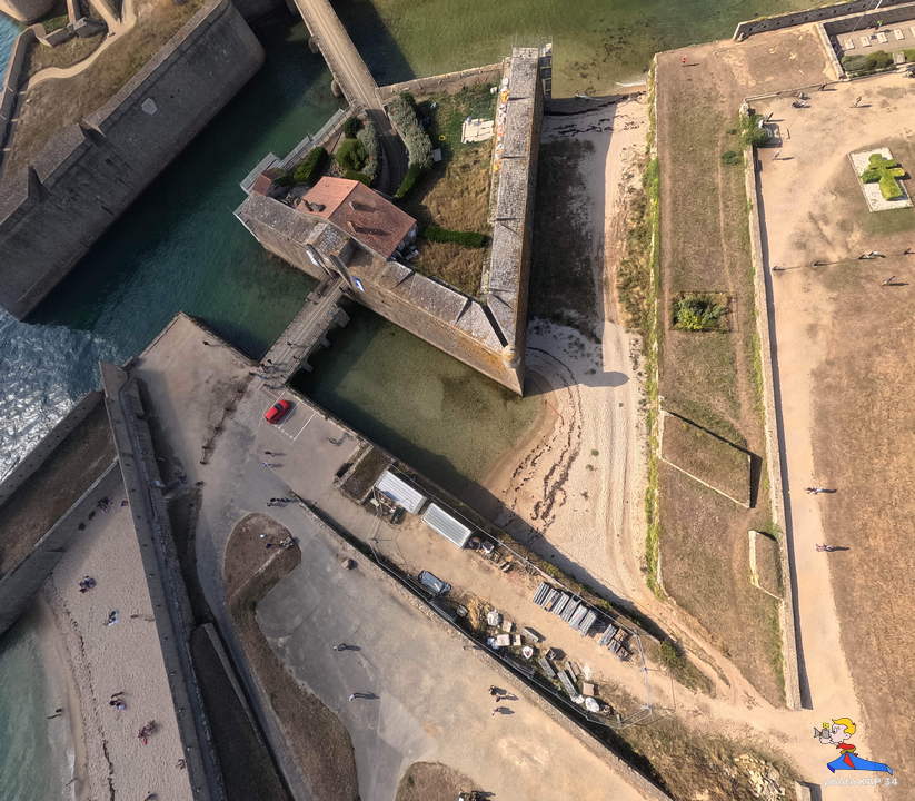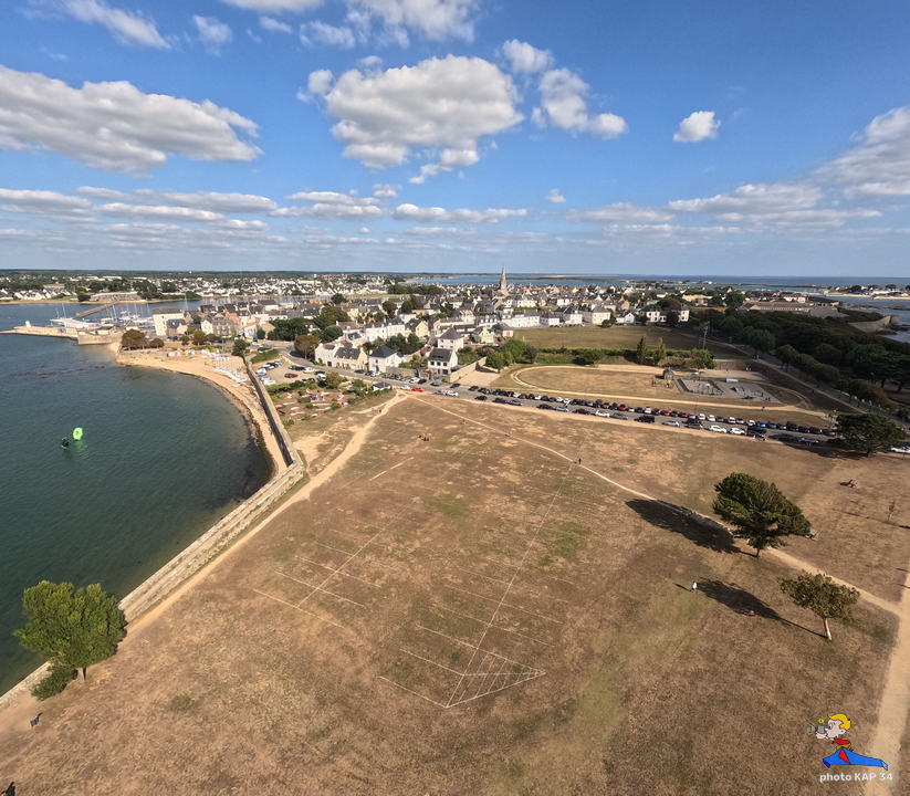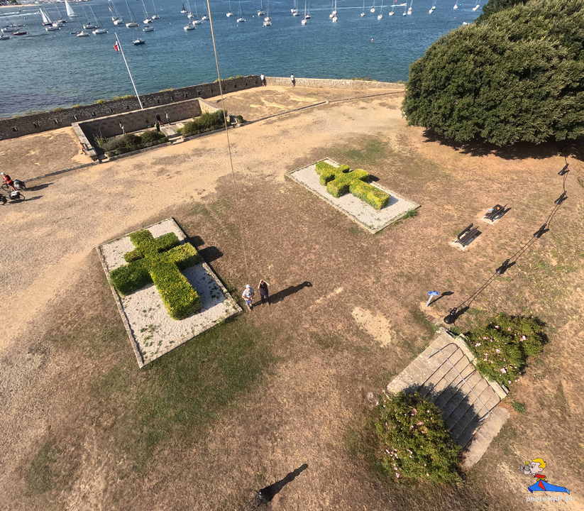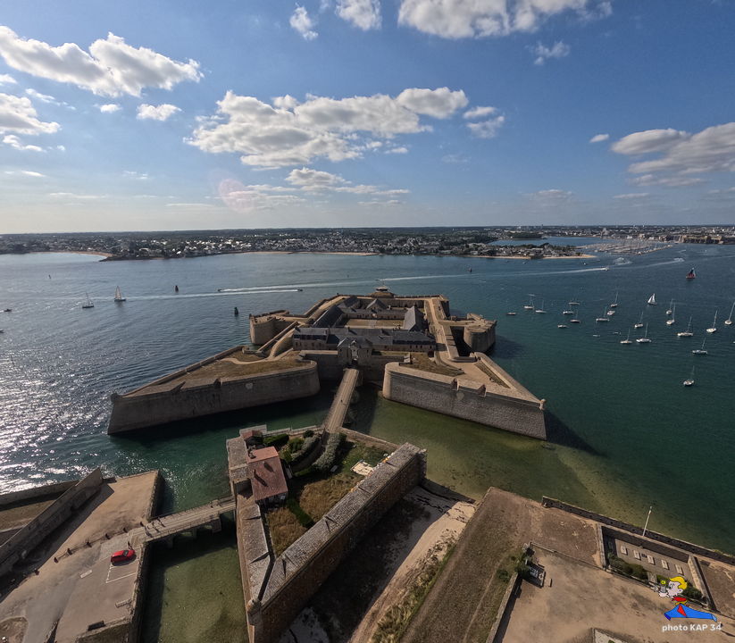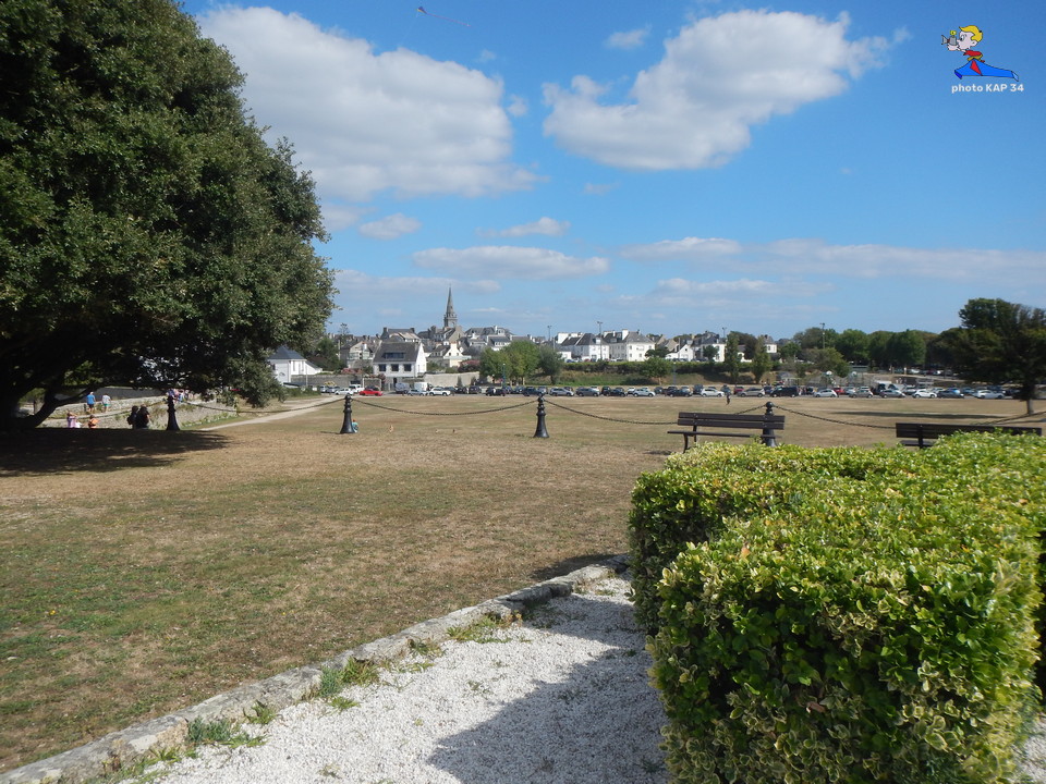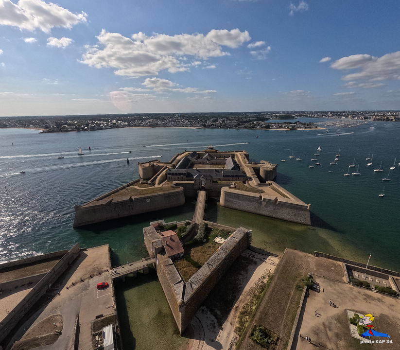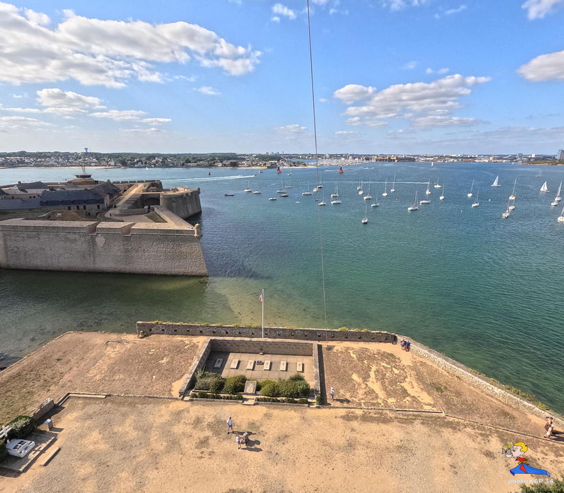 De ses origines, la citadelle garde deux bastions à l’allure ibérique. On y accède en franchissant un petit pont et en traversant la demi-lune, ouvrage défensif en triangle. Sur le chemin de ronde festonné de verdure, de silencieux canons restent tournés vers l’ île de Groix. Aujourd’hui, les regards s’orientent plus pacifiquement vers la pointe de Gâvres. Des pâtis, ancienne place d’arme, une porte trouant les remparts rejoint l’agréable plage des Grands-Sables.