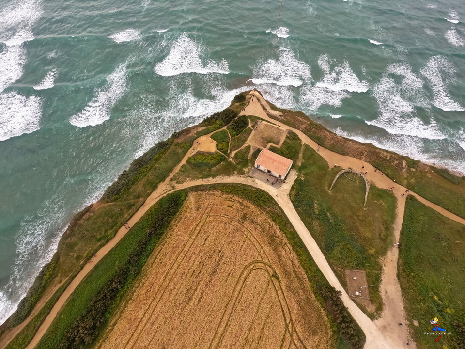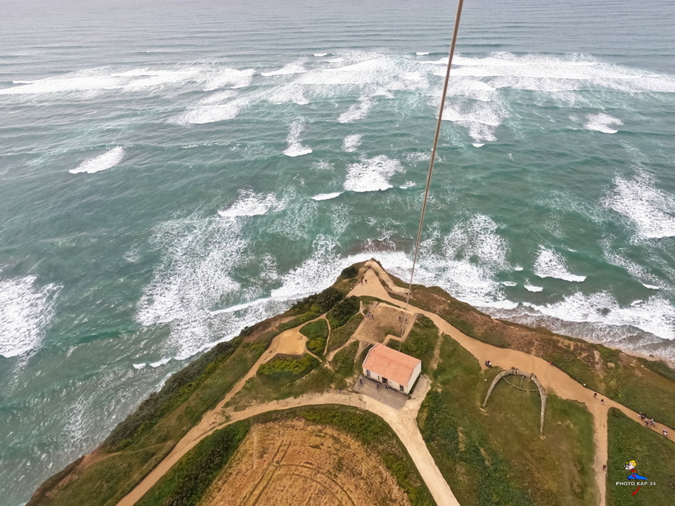 Données techniques : Reportage photographique réalisé au moyen d’une camera de sport GO Pro Hero 10 en mode photo linéaire, suspension pendulaire sur une nacelle rotative automatique, rotations à 360°. cerf-volant de type delta Conyne en tissu antivent (3m d’envergure) , altitudes des prises de vues de 50 m à 150m.
